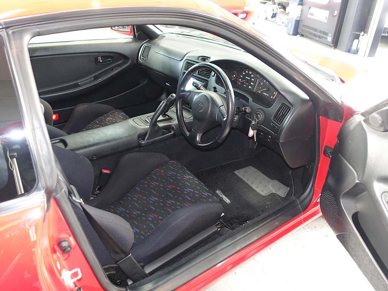 MR2イメージカラーのスーパーレッド、工場出荷状態の様に美しく輝いており、退色や色褪せ、傷なども 無く気持ち良くお乗り頂けるボディコンディションとなっております。